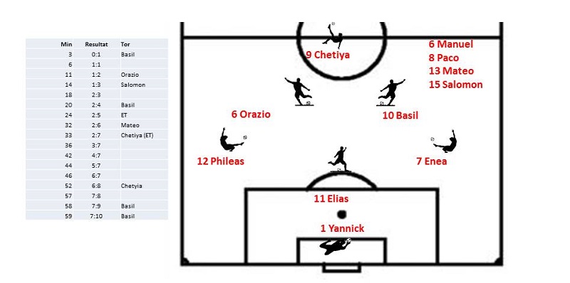 Verstärkt durch 3 Spieler vom Ed konnten wir uns am Ende gegen einen starken und aufsässigen Gegner doch noch durchsetzen. Adrenalin pur zwischen der 36. und 57. Minute.