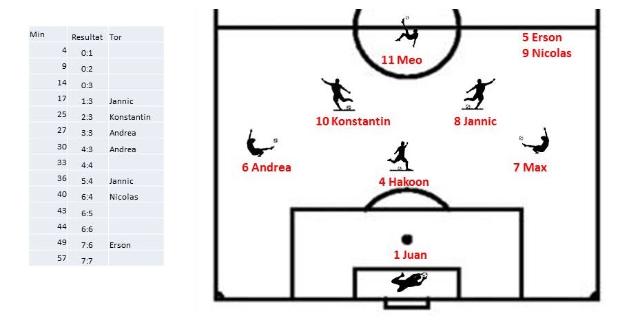 Nach verschlafenen ersten 20Minuten hat sich das Ee ins Spiel gefunden, konnte im zweiten Abschnitt das Spiel sogar drehen musste aber dann in den Schlussminuten den Gegentreffer zum 7:7 hinnehmen.