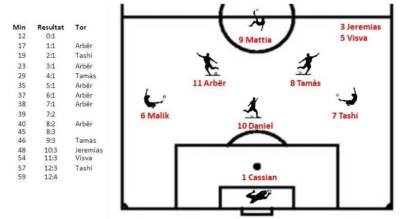 Schlussendlich ein (vielleicht zu?) klarer Sieg mit einem krönenden Abschluss, dem bravourös gehaltenen Penalty unseres Torspielers in der letzten Minute.