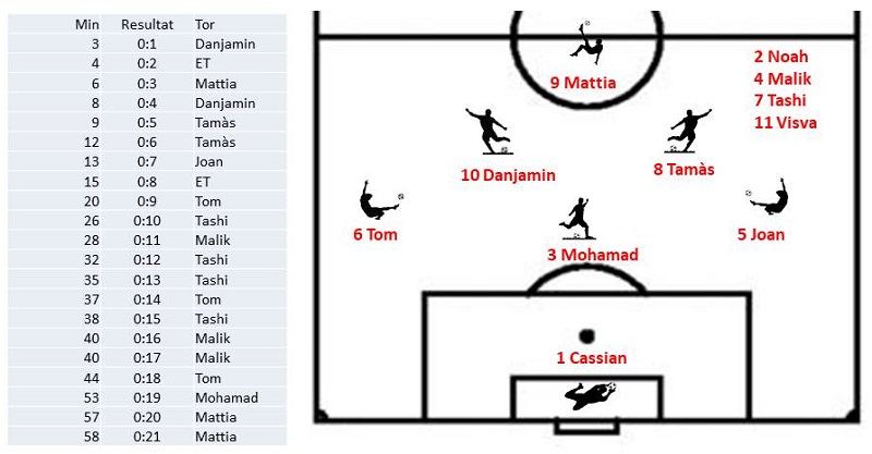 Leider ist ihm das heute nicht gelungen. Unsere Defensive war - dank der Platzgrösse - zu kompakt, das Spiel nach vorne zu überlegen und so hätte das Resultat durchaus noch höher ausfallen können.