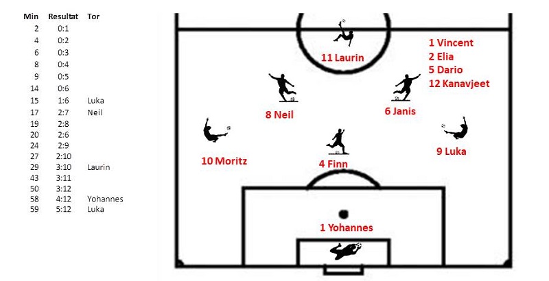 Leider wurde ein Spieler des Gegners zu oft allein gelassen. Dieser liess sich dann nicht zweimal bitten um den Ball in unserem Tor unterzubringen.
