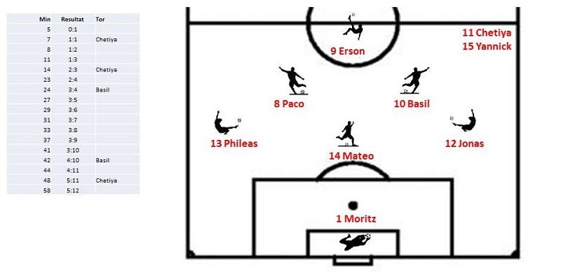 Verstärkt durch 3 Spieler vom Ed konnten wir uns am Ende gegen einen starken und aufsässigen Gegner doch noch durchsetzen. Adrenalin pur zwischen der 36. und 57. Minute.