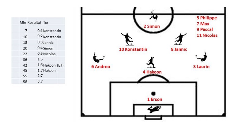 Trotz Nebel und tiefem Boden teilweise schöne Kombinationen. Am Ende ein nie in Frage gestellter Sieg mit 3:7 Toren