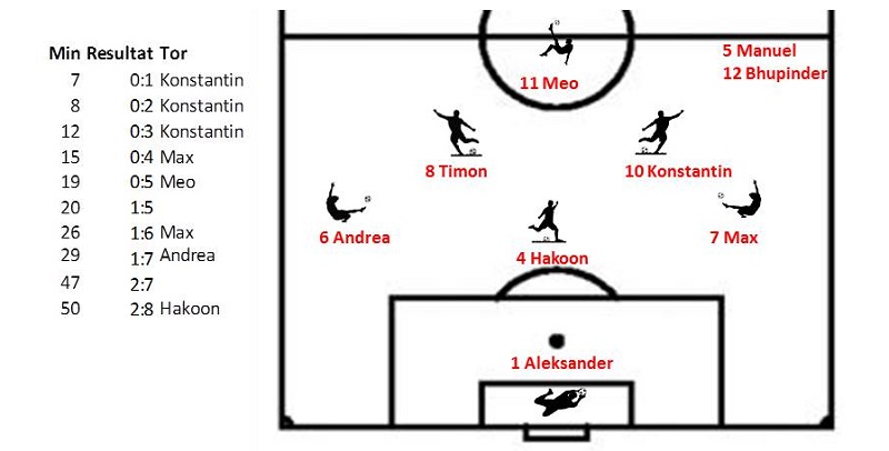 dafür mit Hilfe von 3 Spielern aus anderen Teams, spielte sich die Mannschaft zu einem souveränen, nie in Frage gestellten 8:2 Erfolg.