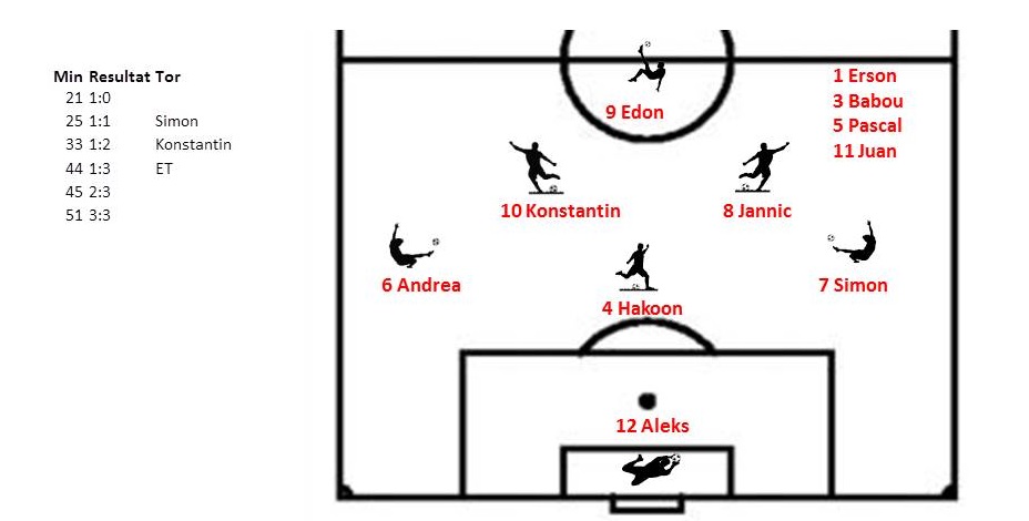 Im zweiten Spiel lieferte das Ee ein ausgeglichenes Spiel, meistens mit leichter Feldüberlegenheit - welche aber nicht in Tore umgewandelt werden konnte. Am Ende ein gerechtes Unentschieden.